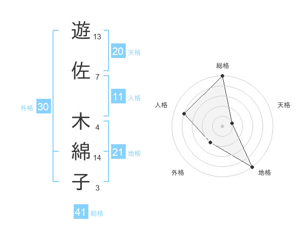 遊佐 木綿子さんを姓名の画数から五運を鑑定