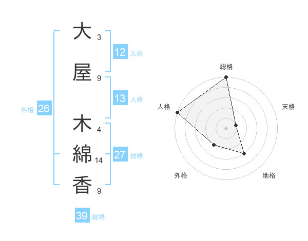 大屋 木綿香さんを姓名の画数から五運を鑑定