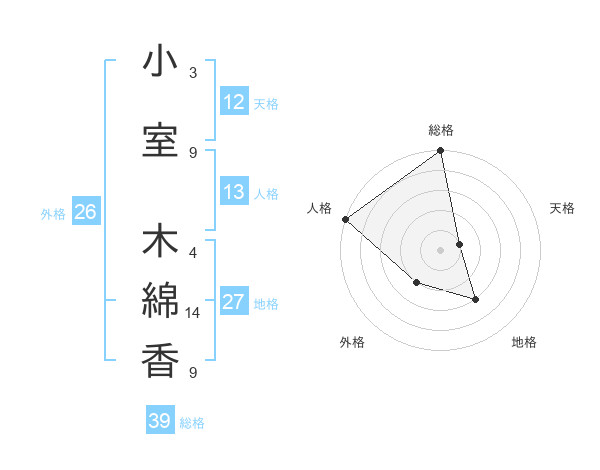 小室 木綿香さんの地格は27画の3点!