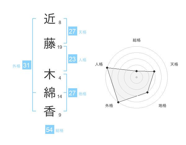近藤 木綿香さんの天格は27画の3点!