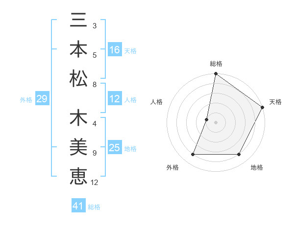 三本松 木美恵さんを姓名の画数から五運を鑑定