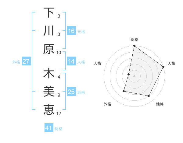 下川原 木美恵さんの総格は41画の5点!