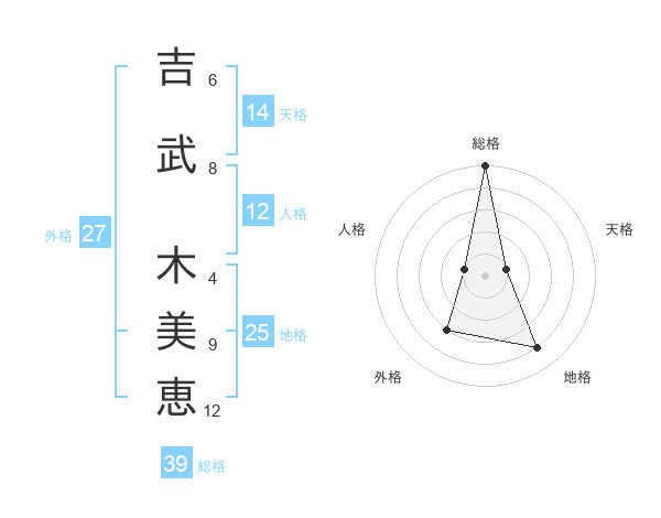吉武 木美恵さんを姓名の画数から五運を鑑定