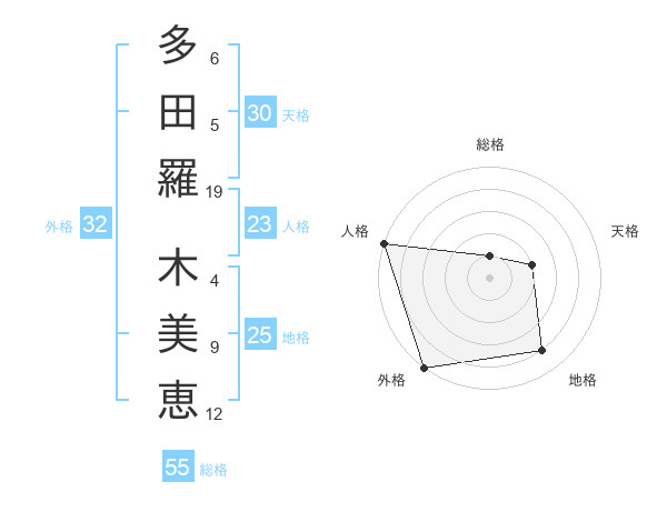 多田羅 木美恵さんの外格は32画の5点!
