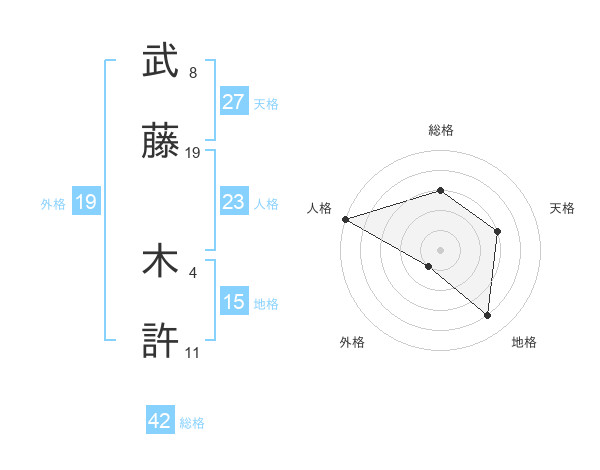 武藤 木許さんの地格は15画の4点!
