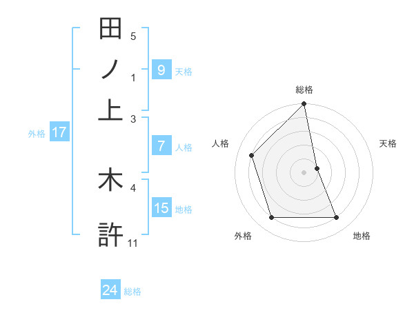 田ノ上 木許さんを姓名の画数から五運を鑑定