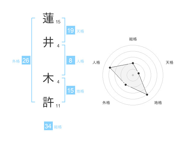 蓮井 木許さんの地格は15画の4点!