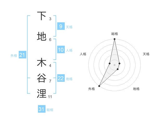 下地 木谷浬さんを姓名の画数から五運を鑑定