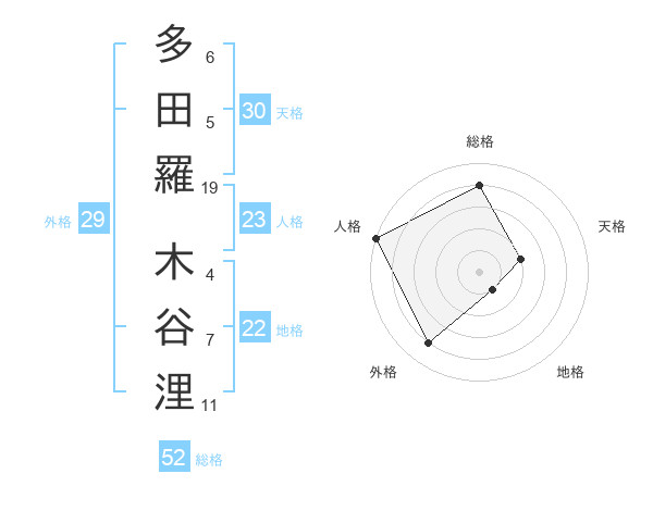多田羅 木谷浬さんを姓名の画数から五運を鑑定