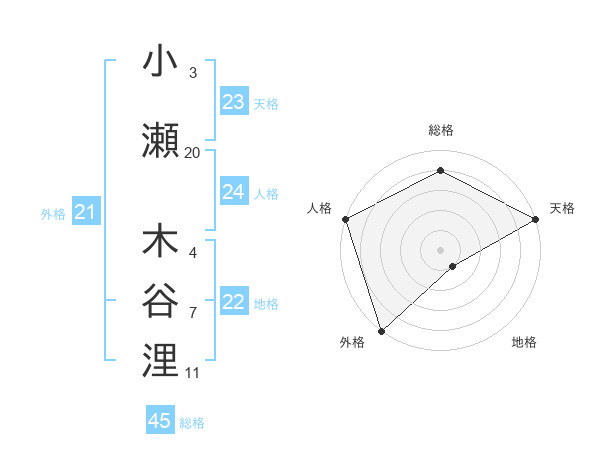 小瀬 木谷浬さんを姓名の画数から五運を鑑定