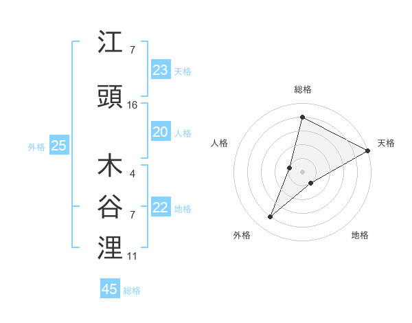 江頭 木谷浬さんを姓名の画数から五運を鑑定