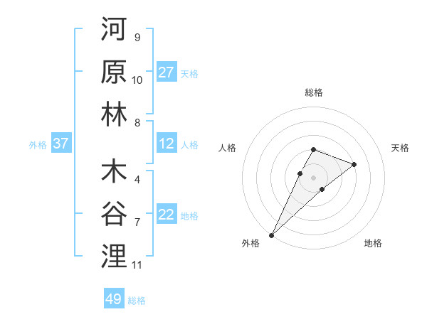 河原林 木谷浬さんを姓名の画数から五運を鑑定