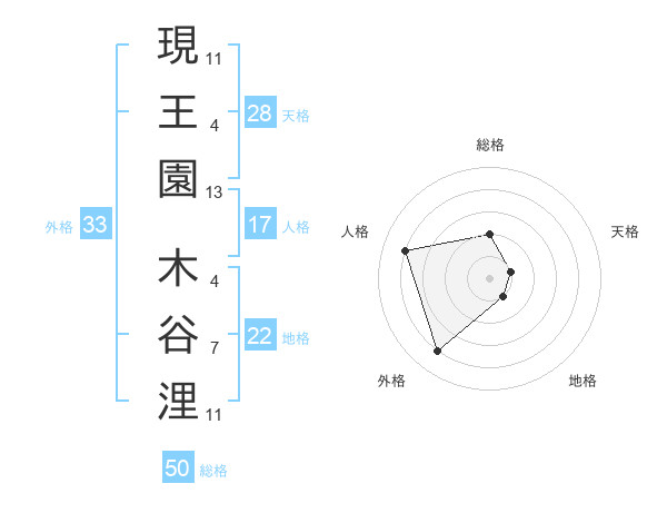 現王園 木谷浬さんを姓名の画数から五運を鑑定