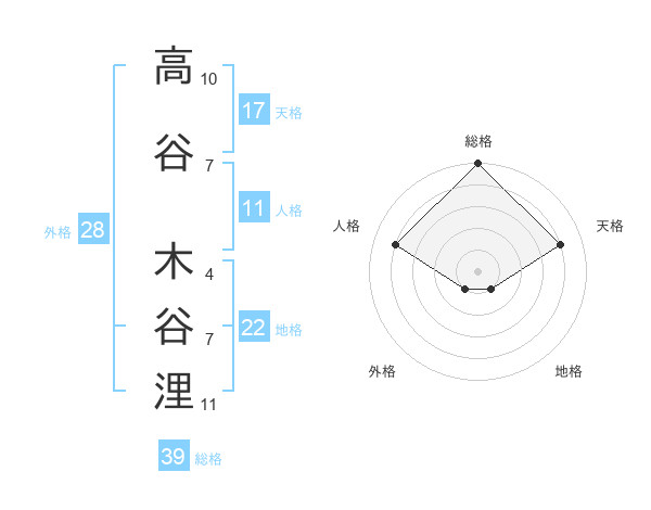 高谷 木谷浬さんを姓名の画数から五運を鑑定