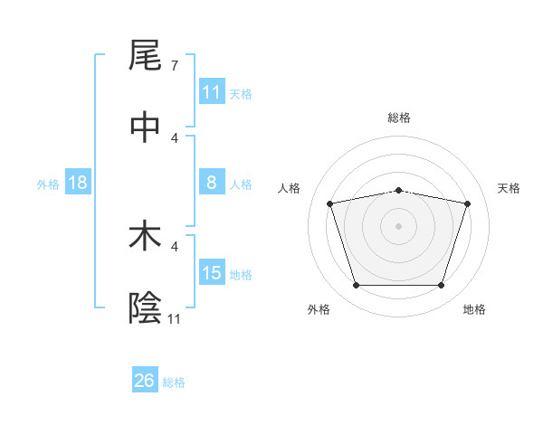 尾中 木陰さんを姓名の画数から五運を鑑定
