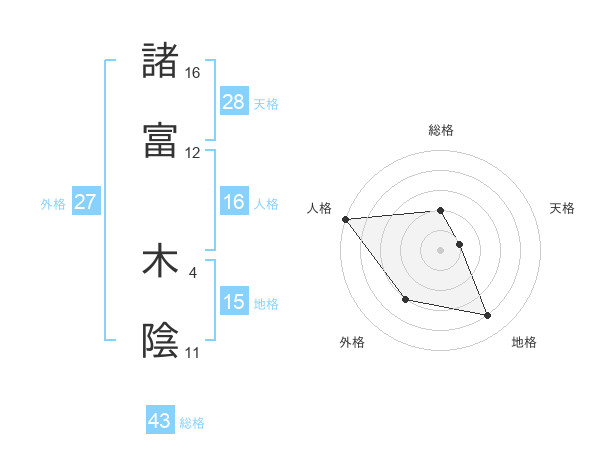 諸富 木陰さんを姓名の画数から五運を鑑定