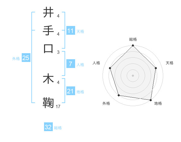 井手口 木鞠さんを姓名の画数から五運を鑑定