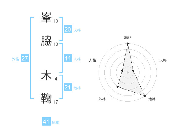 峯脇 木鞠さんの総格は41画の5点!