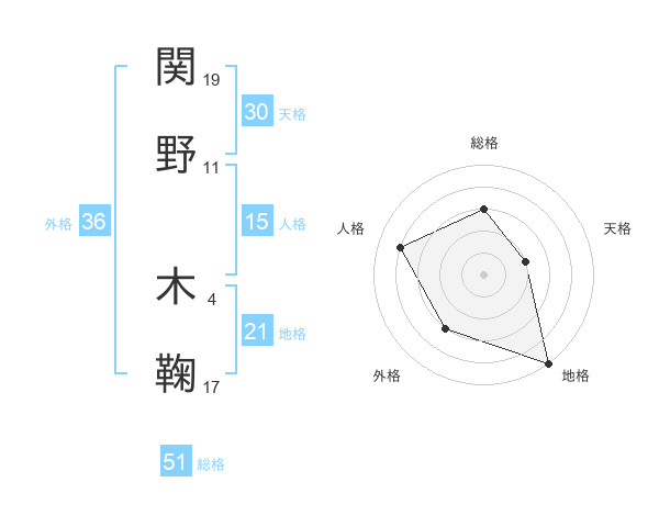 関野 木鞠さんの総格は51画の3点!