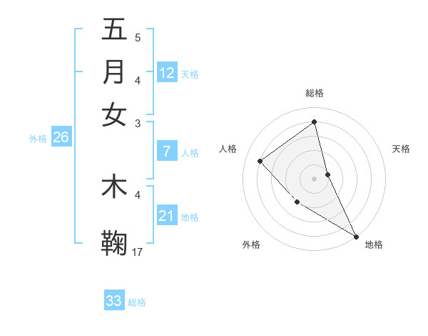 五月女 木鞠さんの総格は33画の4点!
