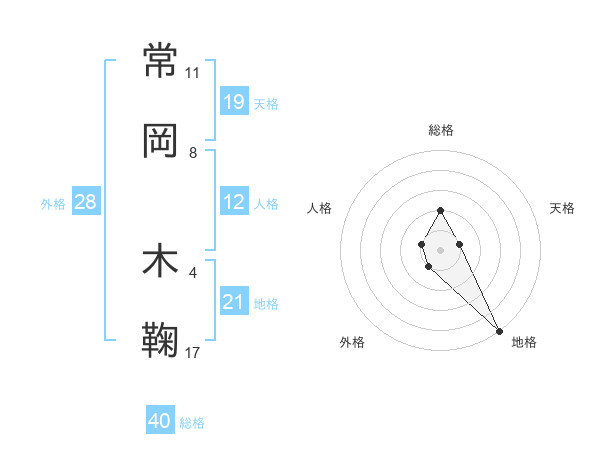 常岡 木鞠さんを姓名の画数から五運を鑑定