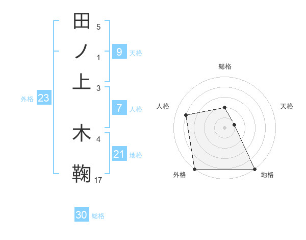 田ノ上 木鞠さんを姓名の画数から五運を鑑定