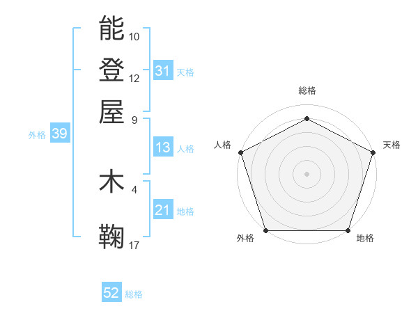 能登屋 木鞠さんを姓名の画数から五運を鑑定
