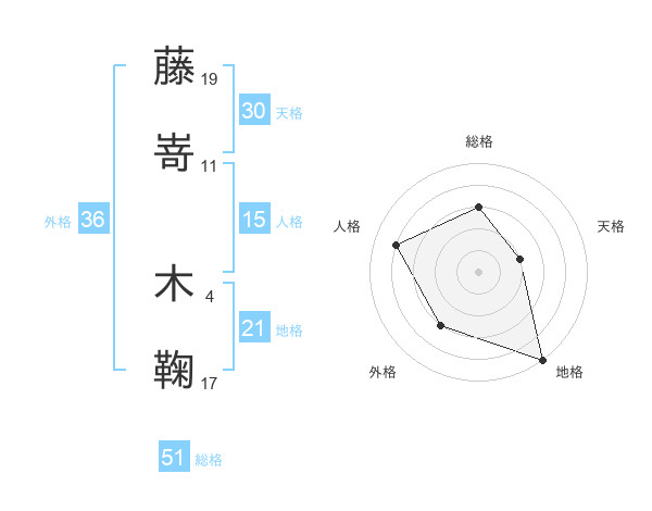 藤嵜 木鞠さんを姓名の画数から五運を鑑定