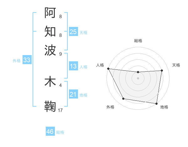 阿知波 木鞠さんの天格は25画の4点!