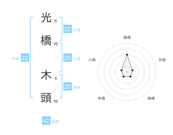 光橋 木頭さんの総格は42画の3点!