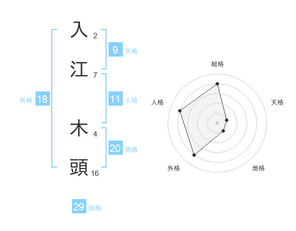 入江 木頭さんの総格は29画の4点!