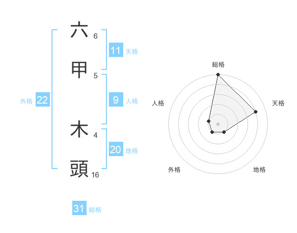 六甲 木頭さんの総格は31画の5点!