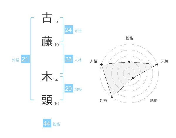古藤 木頭さんの総格は44画の2点!