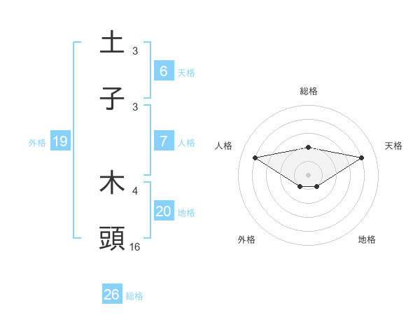 土子 木頭さんの総格は26画の2点!