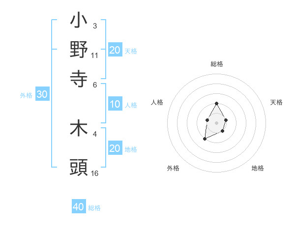 小野寺 木頭さんを姓名の画数から五運を鑑定