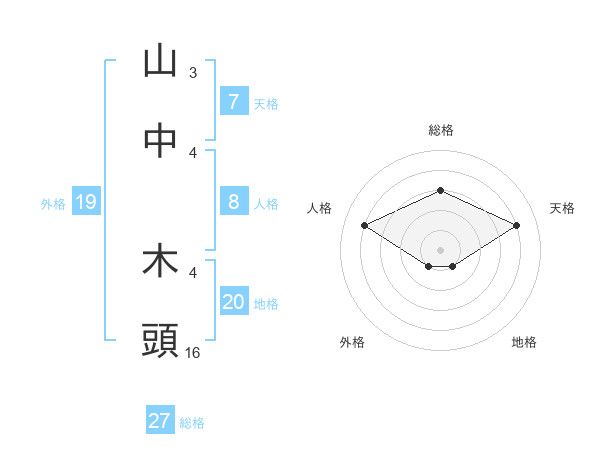 山中 木頭さんの総格は27画の3点!