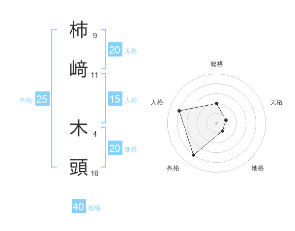 柿﨑 木頭さんを姓名の画数から五運を鑑定