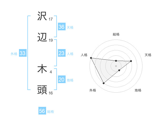 沢辺 木頭さんの天格は36画の3点!