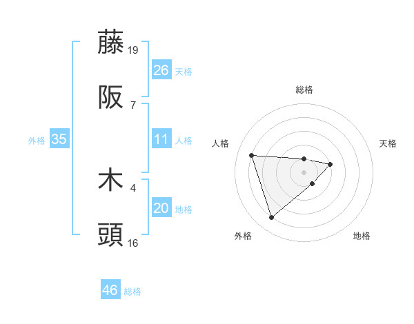 藤阪 木頭さんの総格は46画の1点!