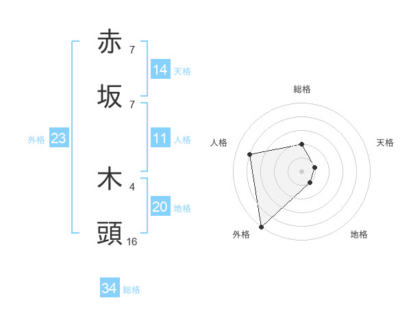 赤坂 木頭さんを姓名の画数から五運を鑑定