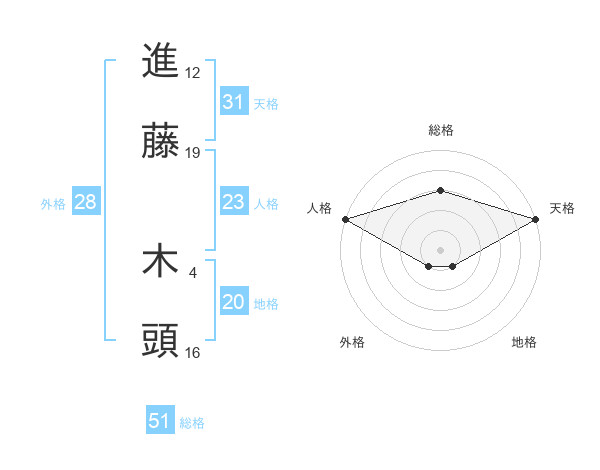 進藤 木頭さんの総格は51画の3点!