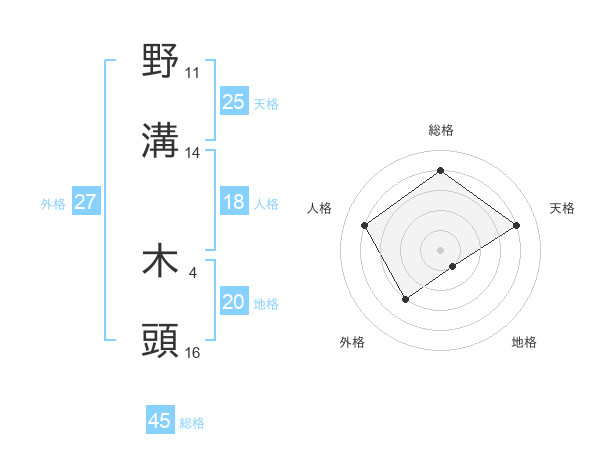野溝 木頭さんを姓名の画数から五運を鑑定