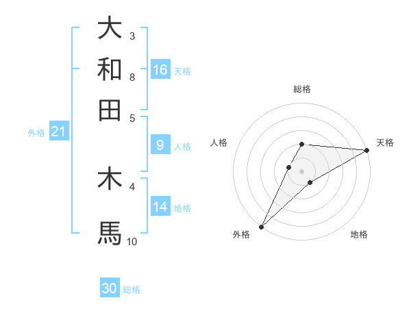 大和田 木馬さんを姓名の画数から五運を鑑定
