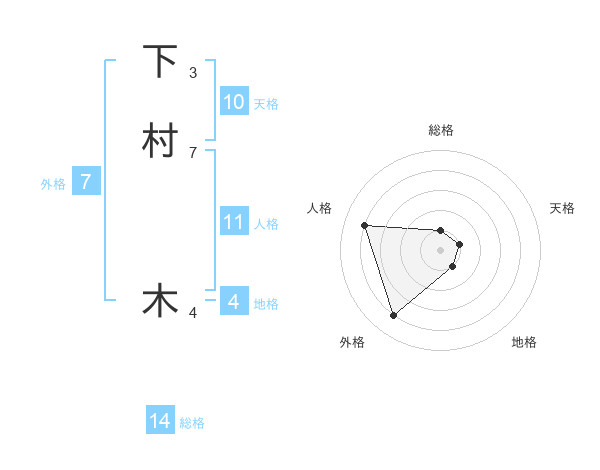 下村 木さんの外格は7画の4点!