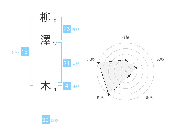 柳澤 木さんの外格は13画の5点!