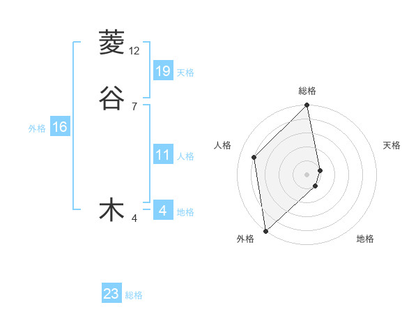 菱谷 木さんの外格は16画の5点!