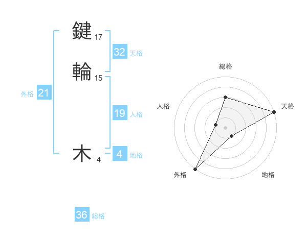 鍵輪 木さんを姓名の画数から五運を鑑定