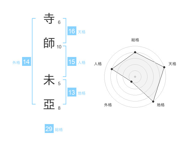 寺師 未亞さんの総格は29画の4点!