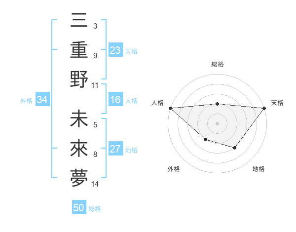 三重野 未來夢さんを姓名の画数から五運を鑑定