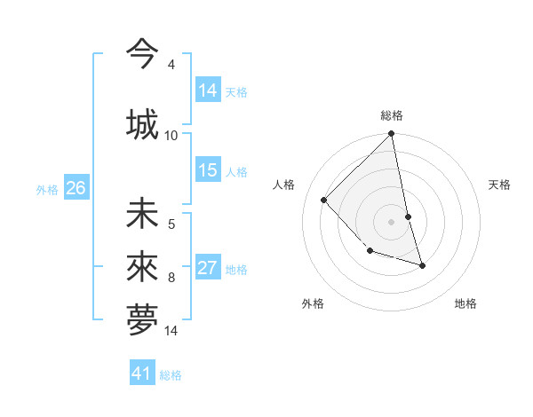 今城 未來夢さんを姓名の画数から五運を鑑定